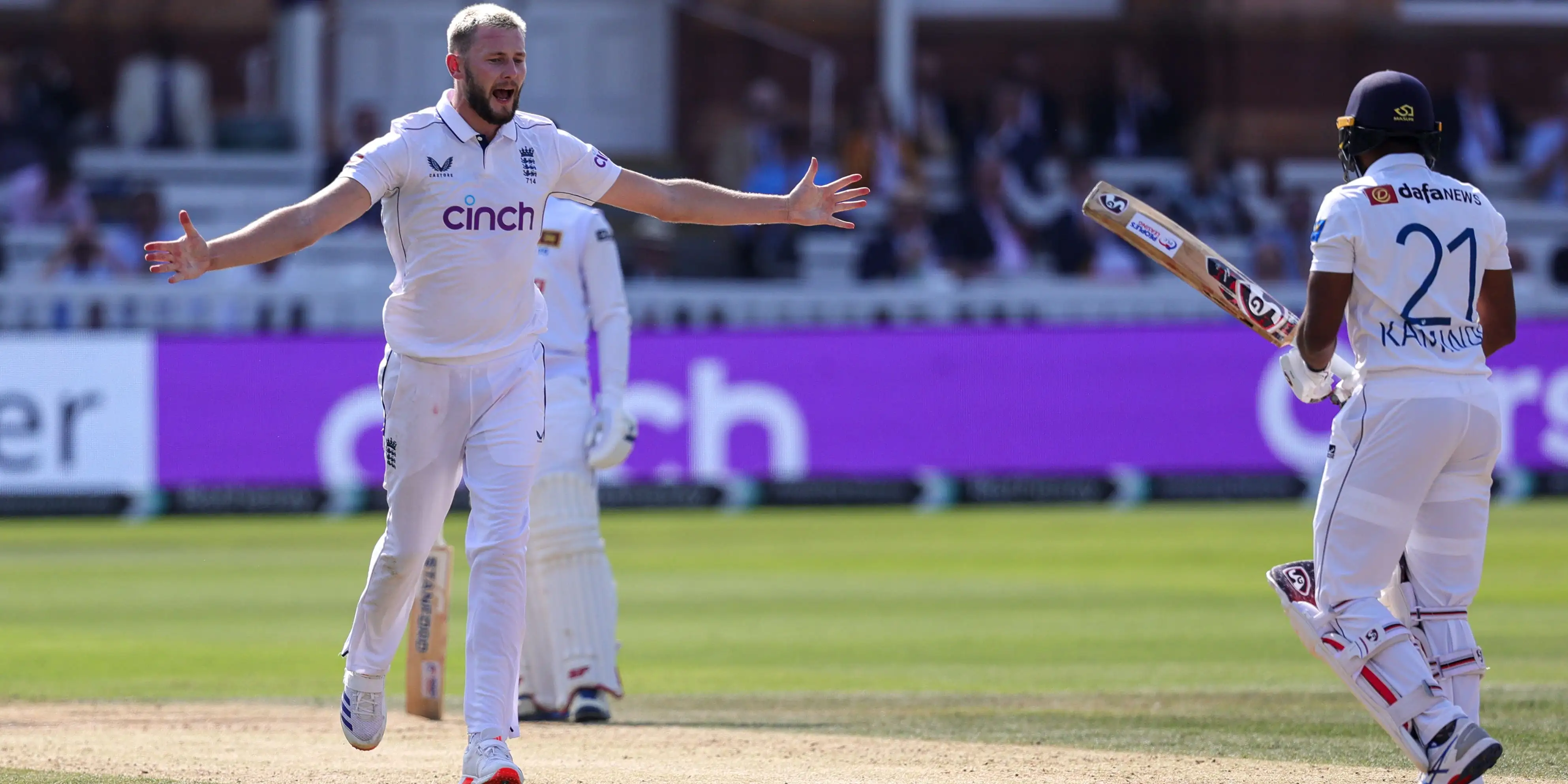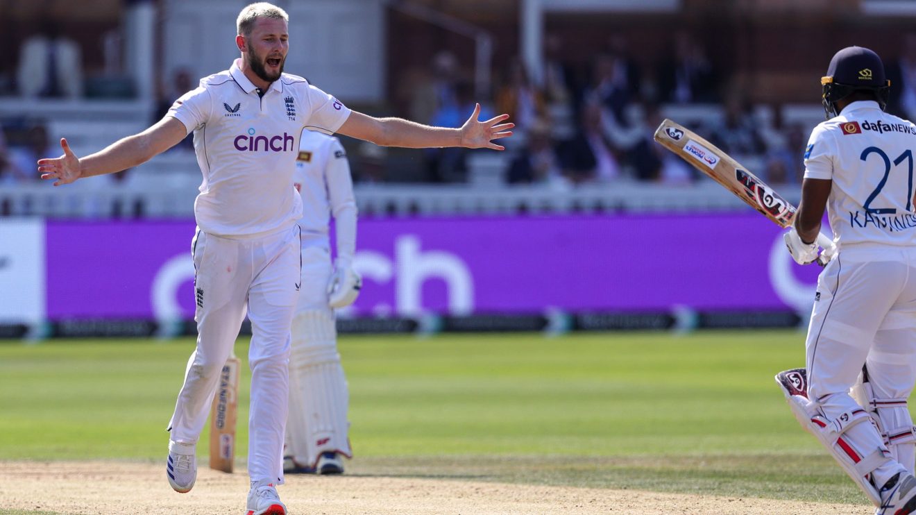 Kamindu Mendis has been the biggest batting thorn in England’s side in this series but he lasted just five balls before throwing his hands at Atkinson from round the wicket, with Ben Duckett taking the edge.