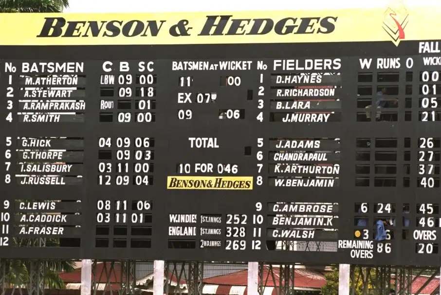 The next two Tests were stone-cold classics in Trinidad, split 1-1, both won by three wickets with the biggest score of the match coming in the run-chase. First West Indies sneaked to their 282-run target on the back of Carl Hooper’s 94 not out before Stewart’s 83 got England home a week later.
