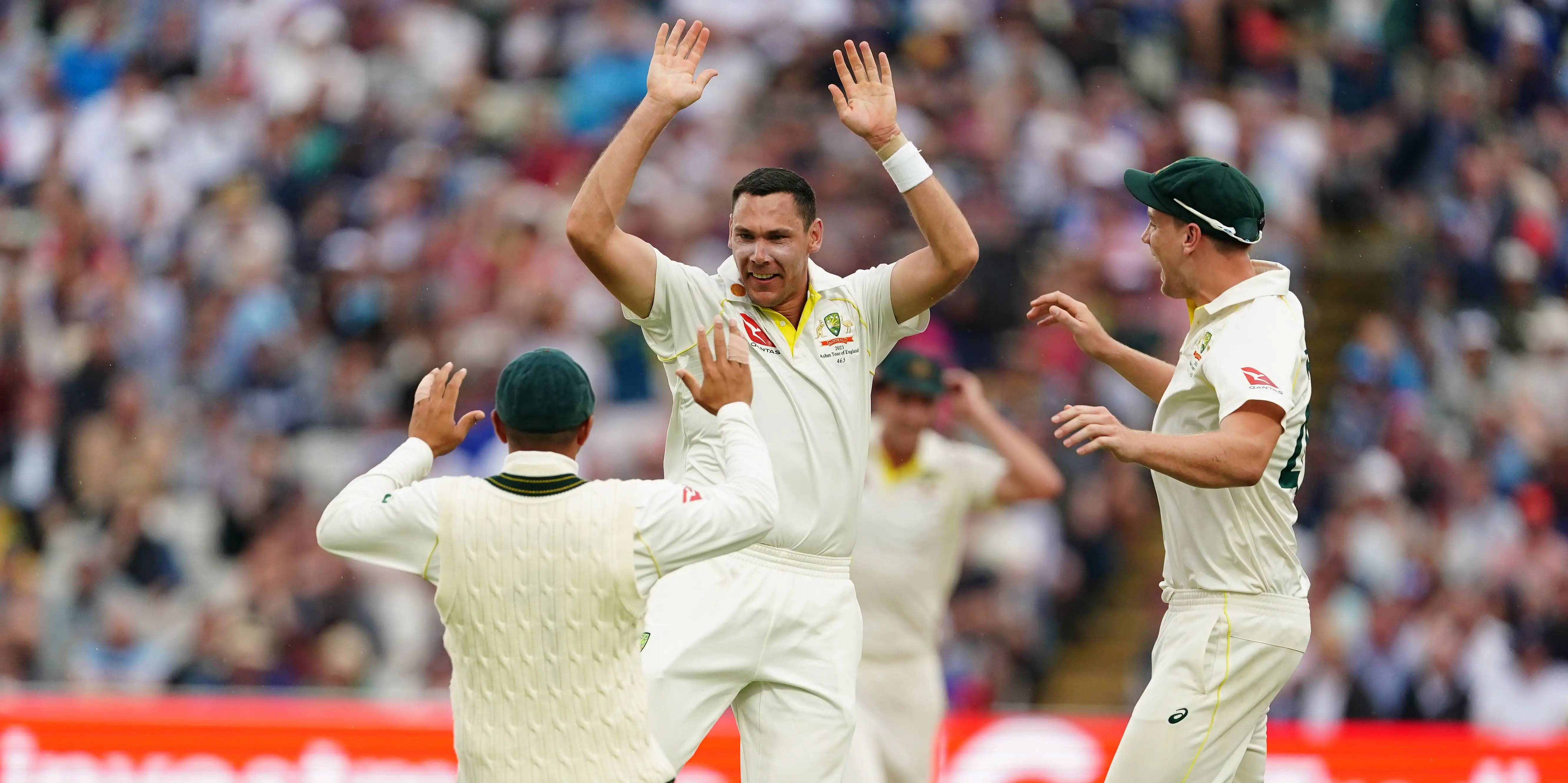 Cummins had Duckett (19) brilliantly taken in the gully, the latest on Cameron Green’s production line of outstanding catches, while Crawley (seven) endured a handful of close calls before Boland finally took his outside edge.