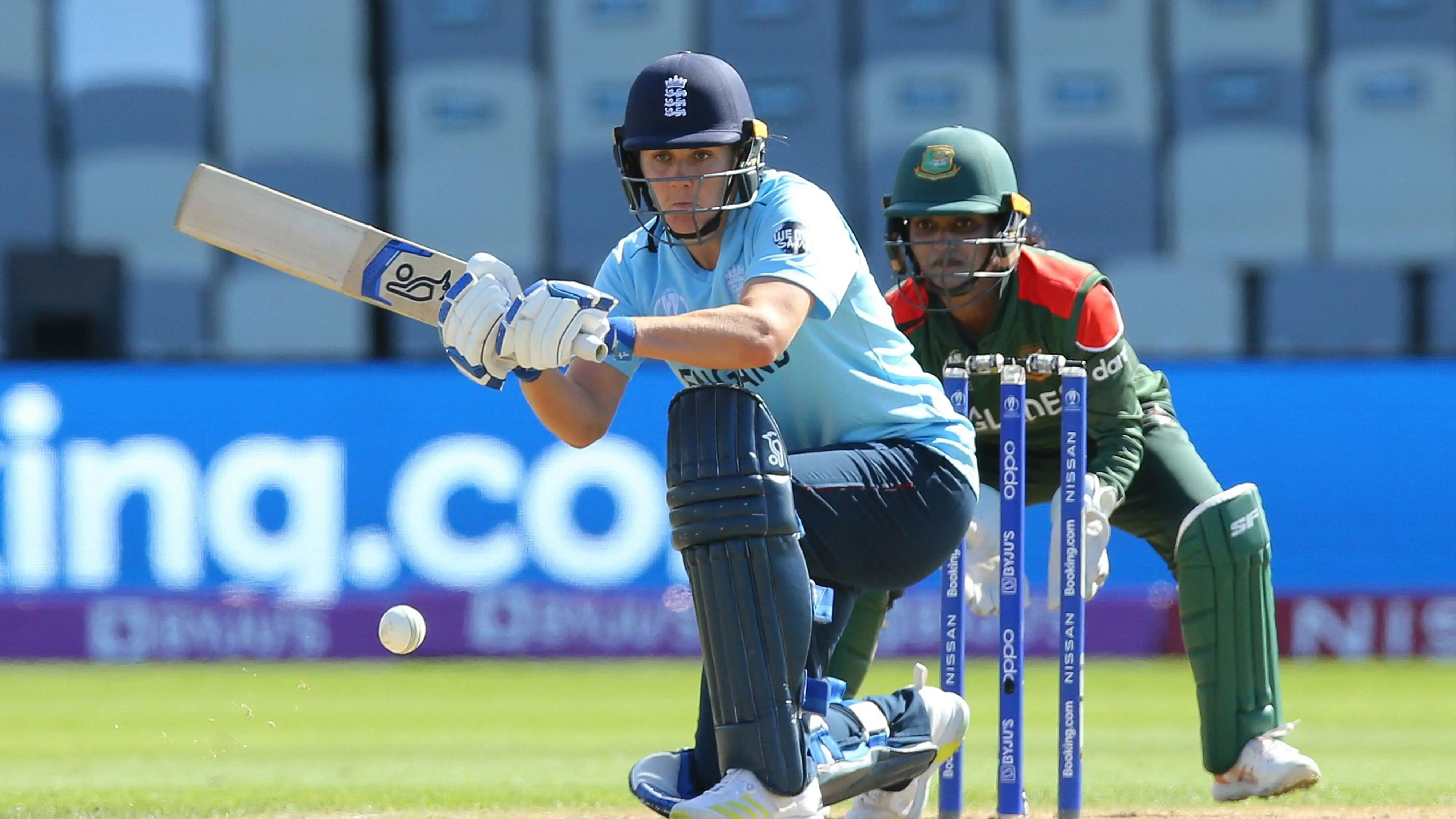 After England won the toss and elected to bat first, Bangladesh managed to take an early wicket in Wellington with Jahanara Alam claiming Danni Wyatt. A sharp catch by Nigar Sultana then dismissed Heather Knight for six before Fahima Khatun claimed Nat Sciver lbw for 40.