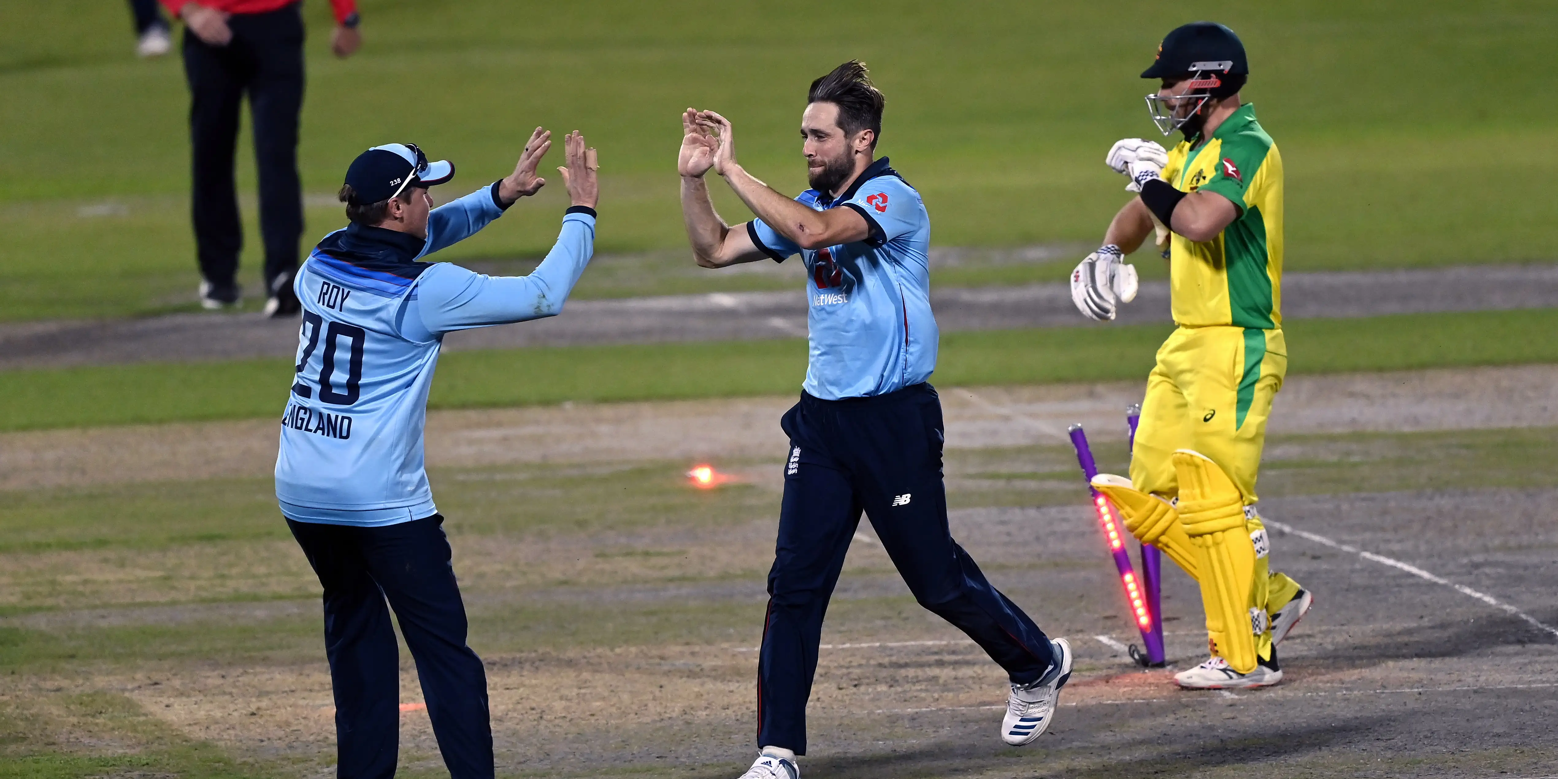 England’s five-year unbeaten run in a bilateral home series looked to be coming to an end but Chris Woakes removed both set batsmen and then Glenn Maxwell, while Jofra Archer and Sam Curran also finished with three wickets.