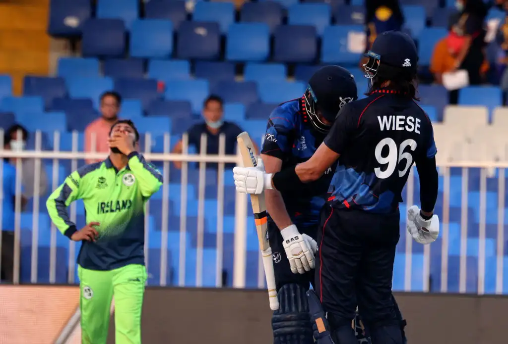 Namibia reach Super 12 stage as Gerhard Erasmus ends Ireland’s T20 World Cup