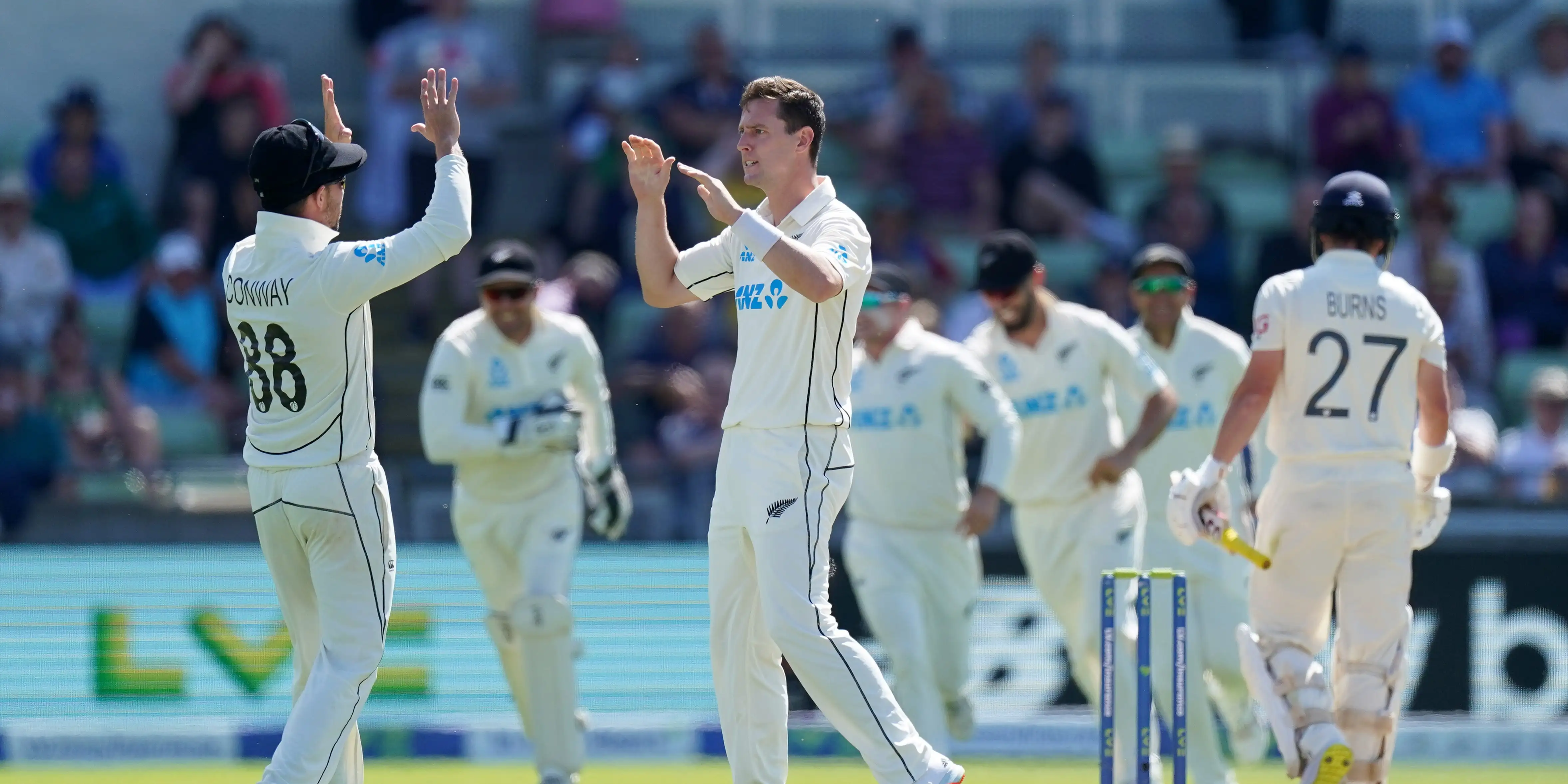 The mood darkened again when Burns, the team’s form batsman, squeezed the second ball to Tom Latham at slip for a duck.