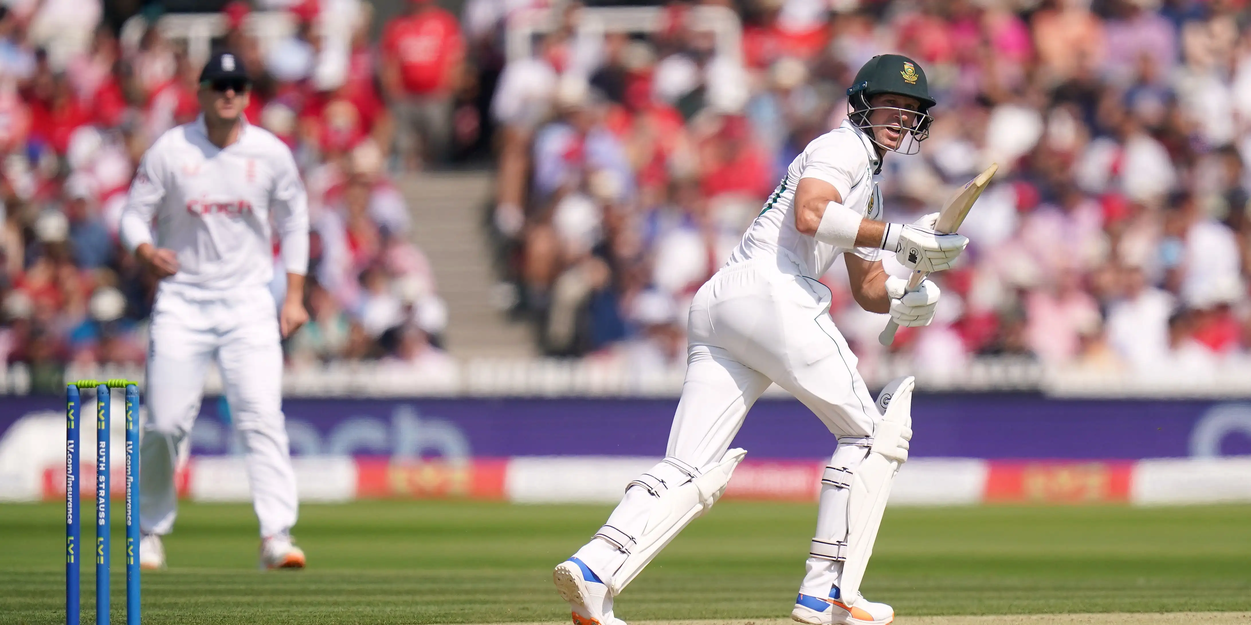 The Proteas new opener started after lunch with two fine drives for four before he took advantage of England’s attacking field with four slips to help himself to a succession of singles and twos in his fifth Test.