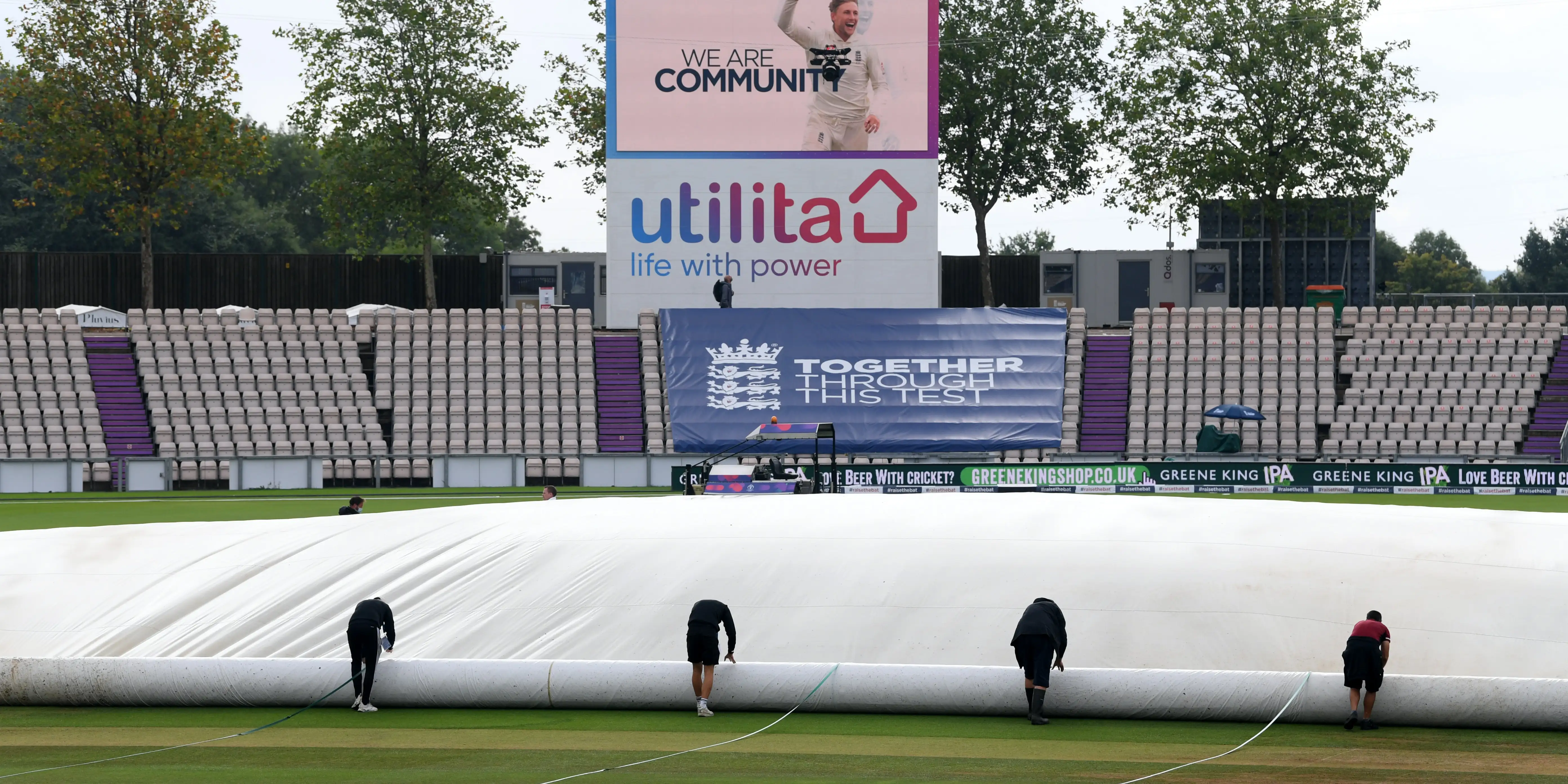 Richard Kettleborough and Michael Gough had yet to complete their assessment when rain returned, with the officials dashing off the field as ground staff dragged on the covers.